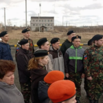В старших классах все гораздо спокойнее. Они убирают территорию яблоневого сада.