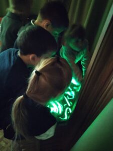 А вот учащиеся 1 «А» класса в рамках «Урока счастья» посетили сенсорную комнату.Мягкие пуфики, повторяющее контуры тела человека, световые приборы помогли расслабиться ребятам после учебной недели и в приятной атмосфере поговорить о счастье. Каждый ребенок попытался создать свое, неповторимое счастье на песке с помощью разнообразных фигурок, передать свои фантазии и переживания. Порелаксировать и просто помечтать…