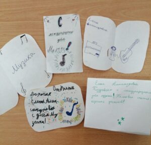 1 октября — Всемирный день музыки. Учащиеся 4 «а» класса изготовили открытки своими руками и поздравили учителя музыки МАОУ ОСОШ №1 Мекаеву Елену Александровну с праздником.