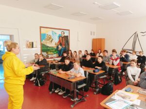 В ходе встречи Инга Валерьевна рассказала, что привело ее в эту профессию и что повлияло на ее выбор. После выступления на Ингу Валерьевну посыпались вопросы. Особенно были активны семиклассники.
