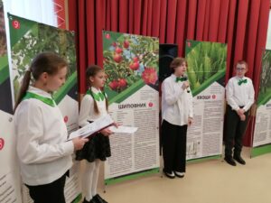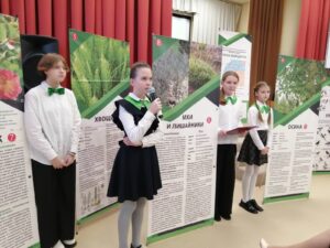 Открывают тропу учащиеся 5 «б» класса: Лик Диана, Кондрат Даша, Пономарчук Юля. Девочки знакомят участников с правилами поведения в лесу. Мельников Павел знакомит ребят с бобрами, рассказывает об их образе жизни и повадках, Шитов Богдан на станции «Птицы» рассказывает о видовом составе птиц Тюменской области. Мельникова Мария предлагает пробежаться по берёзовой опушке, напоминая о целебных свойствах русской берёзки. Увлекательный рассказ о тополе дрожащем или осине поведала ученица 5 » а»класса Губина Полина. Ровкин Константин знакомит со споровыми растениями, а Юнчугова Лиза и Разуваева Полина рассказывают про мхи и лишайники. О лечебных свойствах шиповника узнаем на станции Муравьевой Полины.