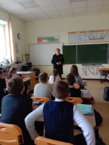 В ОСОШ №1 в этот день проведены беседы ст. инспектора ГИБДД Яковлевой А.А, инспектора ДПС Шрайнер Д.В на тему «Безопасность на дорогах» для 1-4 классов, инспектор ПДН Можаева Н.Н провела для 5,7 классов беседы, направленные на профилактику правонарушений и преступлений, детям 1-4 классам напомнила о правилах поведения с незнакомыми людьми, а инспектор по охране детства Шалабодова А.Ф рассказала детям 6,8 классов о культуре общения в социальных сетях, на улице, в общественных местах.