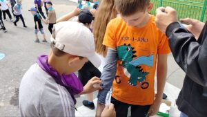 А еще дети познакомились с основами первой помощи: учились оказывать помощь раненому — ведь каждый из нас может стать настоящим героем в нужный момент!