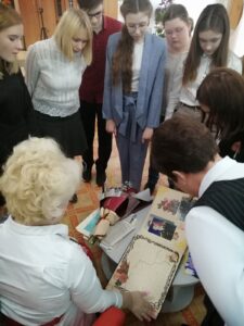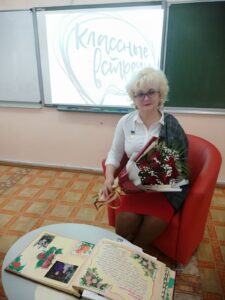 Елена Владимировна отвечала на разные, порой даже каверзные вопросы участников встречи, размышляла о важности профессии учителя, вспоминала годы учёбы в Ишимском педагогическом институте, первый урок в стенах Омутинкой школы №1, об удивительной атмосфере и приключениях во время путешествий со своими учениками. В завершении встречи ученица Елены Владимировны, а ныне учитель русского языка и литературы Боровинская Елена Владимировна, поблагодарила своего наставника теплыми словами. Расходиться не хотелось… Ученики школы ещё долго рассматривали фотоальбом и слушали воспоминания Елены Владимировны. Встреча имела важное значение для осознания подрастающим поколением роли профессии УЧИТЕЛЬ в современном мире.