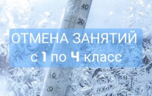 В связи с низкой температурой воздуха — 29 с ветром 21 января очные занятия для обучающихся 1-4 классов отменяются. Обучение будет организованно в дистанционном формате