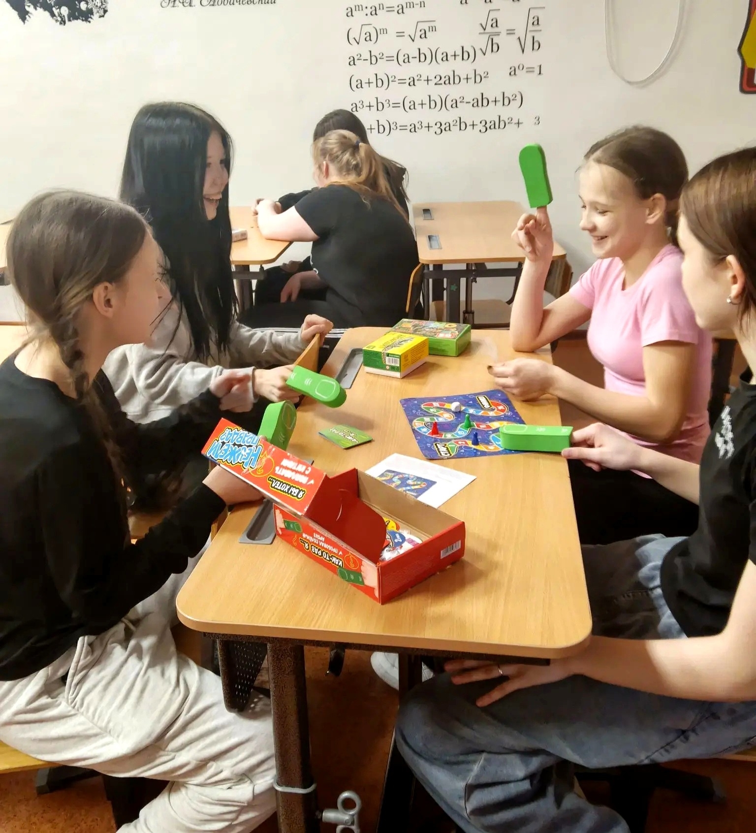 Ученики 8 «В» присоединились к ней. После активной разминки на физкультуре, ребята предпочли провести время вместе, играя в настольные игры и просто общаясь, наслаждаясь живым общением.