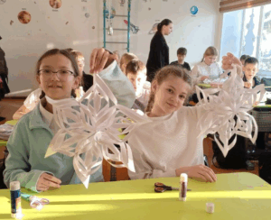 16 декабря учащиеся 4а класса присоединились к акции «Российский детский Дед Мороз». Представители ученического актива Васильева Маргарита, Карпова Нина, Епрева Мария провели мастер-класс по изготовлению объемной снежинки из бумаги.