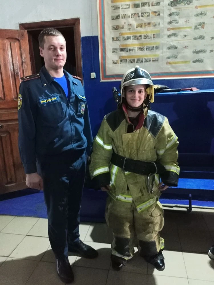 А потом началось самое интересное! 🔥 Ребят пригласили попробовать надеть боевую одежду пожарного и почувствовать себя настоящими героями-спасателями!
