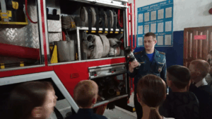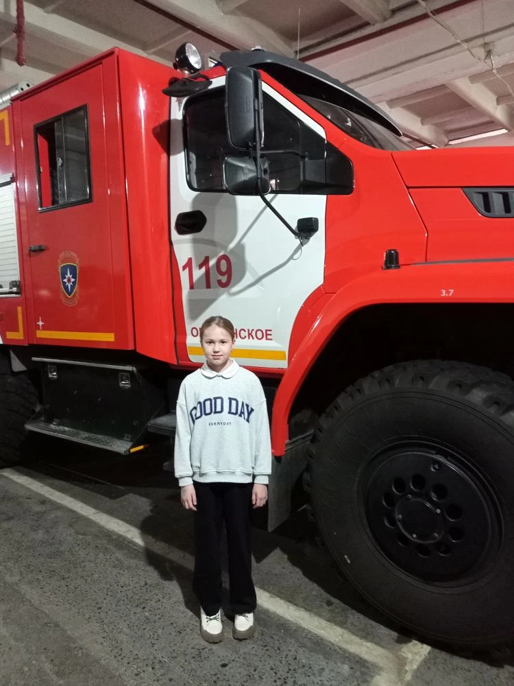 ✨ Сначала пятиклассников провели по всей части, показали гаражи с мощными красными машинами и рассказали, какие инструменты нужны для тушения пожаров.