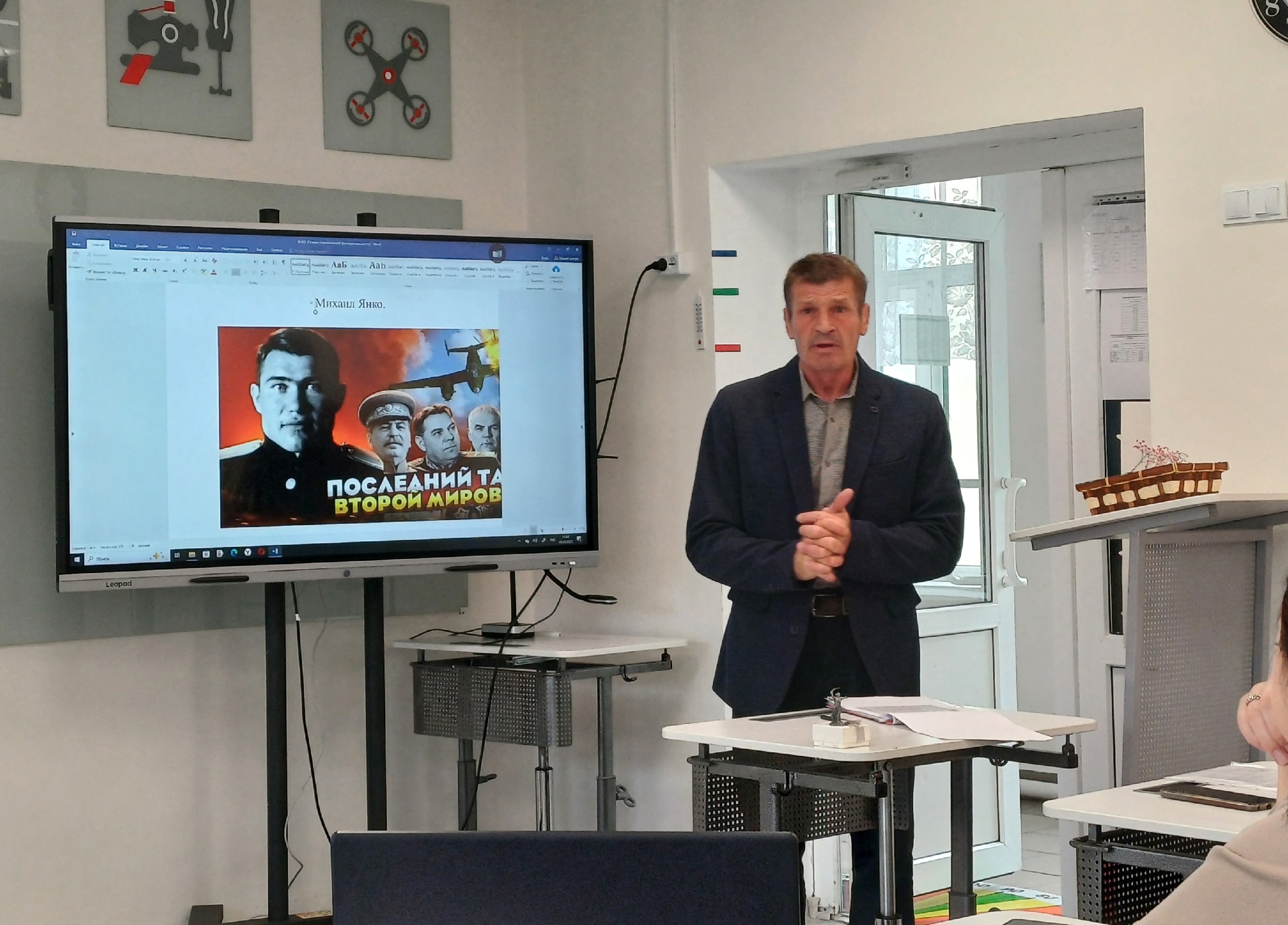 Продолжается реализация общешкольного проекта «Эстафета Победы», приуроченная к Году Защитника Отечества, который взял свое начало в январе 2025 года. На этой неделе выступил учитель физической культуры Михальчук А.С. Он рассказал о герое Великой Отечественной войны , командире звена 37-го штурмового авиационного полка 12-й штурмовой дивизии ВВС Тихоокеанского флота младшем лейтенанте, Михаиле Янко. Бессмертный подвиг был совершен 10 августа 1945 г. При штурме порта Расин Михаил Егорович направил подбитый японской зенитной артиллерией штурмовик на один из военных объектов врага на берегу – несколько дней Герой не дожил до своего 27-летия. Таким образом был выполнен последний во Второй мировой войне огненный таран. Эстафета и статуэтка символа года передана Монахову М.И.