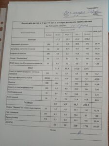 Ежедневное меню в летнем лагере Омутинской специальной школы «Островок детства» с 14.07. по 16.07.25г