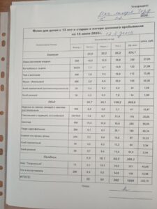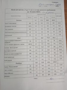 Ежедневное меню в летнем лагере Омутинской специальной школы «Островок детства» с 14.07. по 16.07.25г