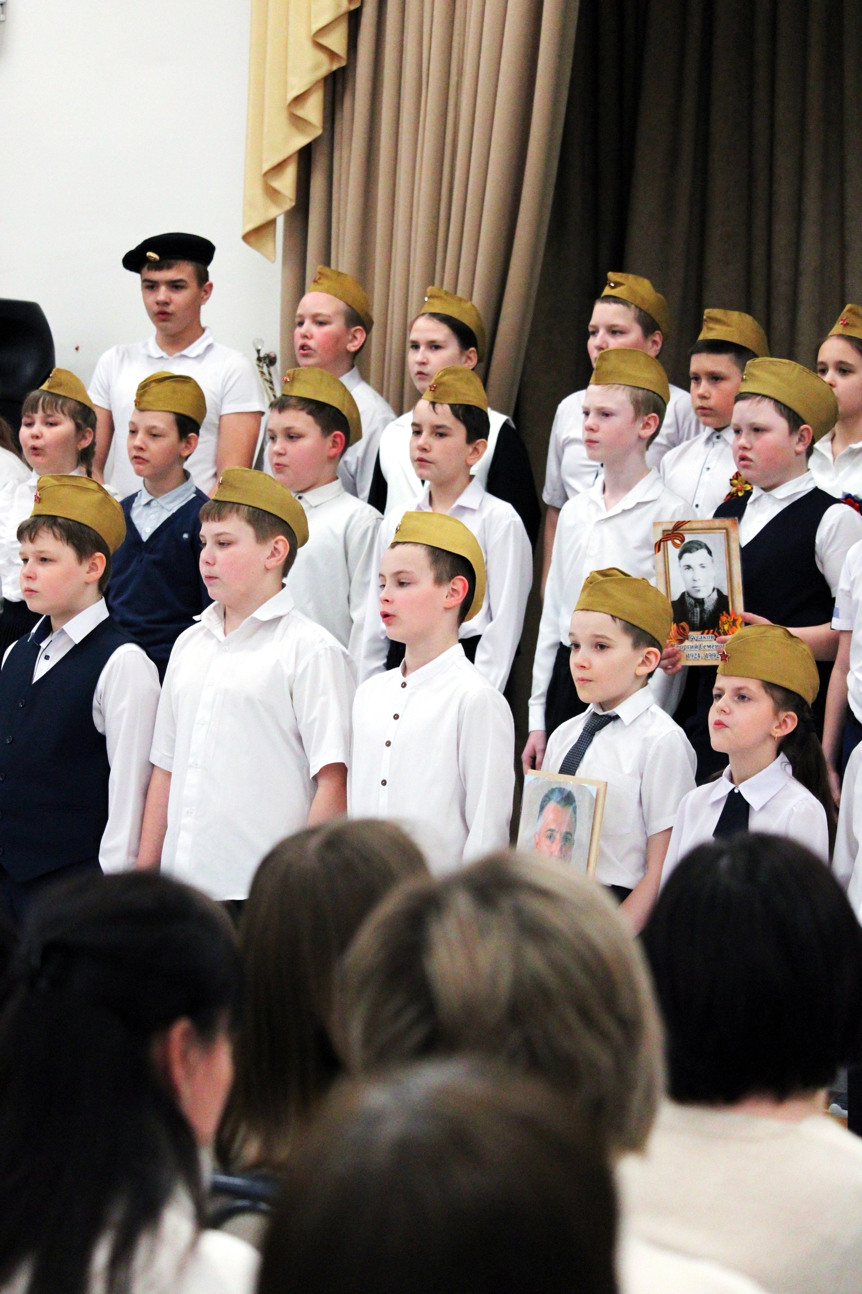 На протяжении всего концерта учащиеся всех классов радовали зрителей своими песенными номерами. В их исполнении звучали песни самых разных жанров, но все они были объединены одной темой: глубоким уважением к народам других национальностей, любовью к нашей Родине – России, и данью памяти нашим защитникам Отечества.