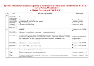 График плановых выездов для работы с родителями и учащимися специалистами АУ СОН ТО «СРЦН с.Омутинское»