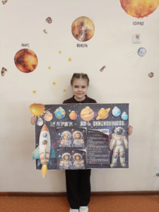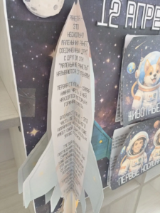 Учащаяся 4 А класса Казанцева Арина выпустила интерактивную газету, посвящённую 65 летию первого полёта в космос. Из нее можно узнать о первых космонавтах, животных в космосе, что такое ракета и как она взлетает, что такое скафандр, и для чего он необходим, а также интересные факты о космосе.