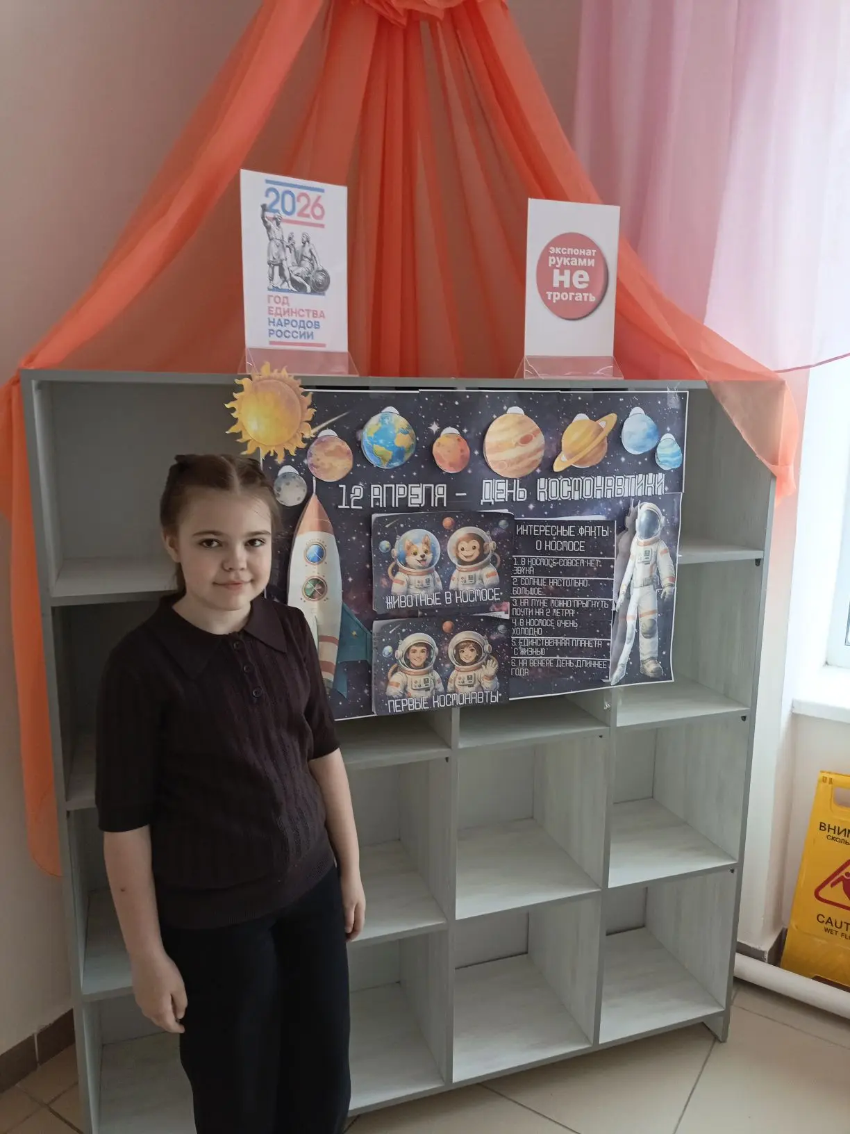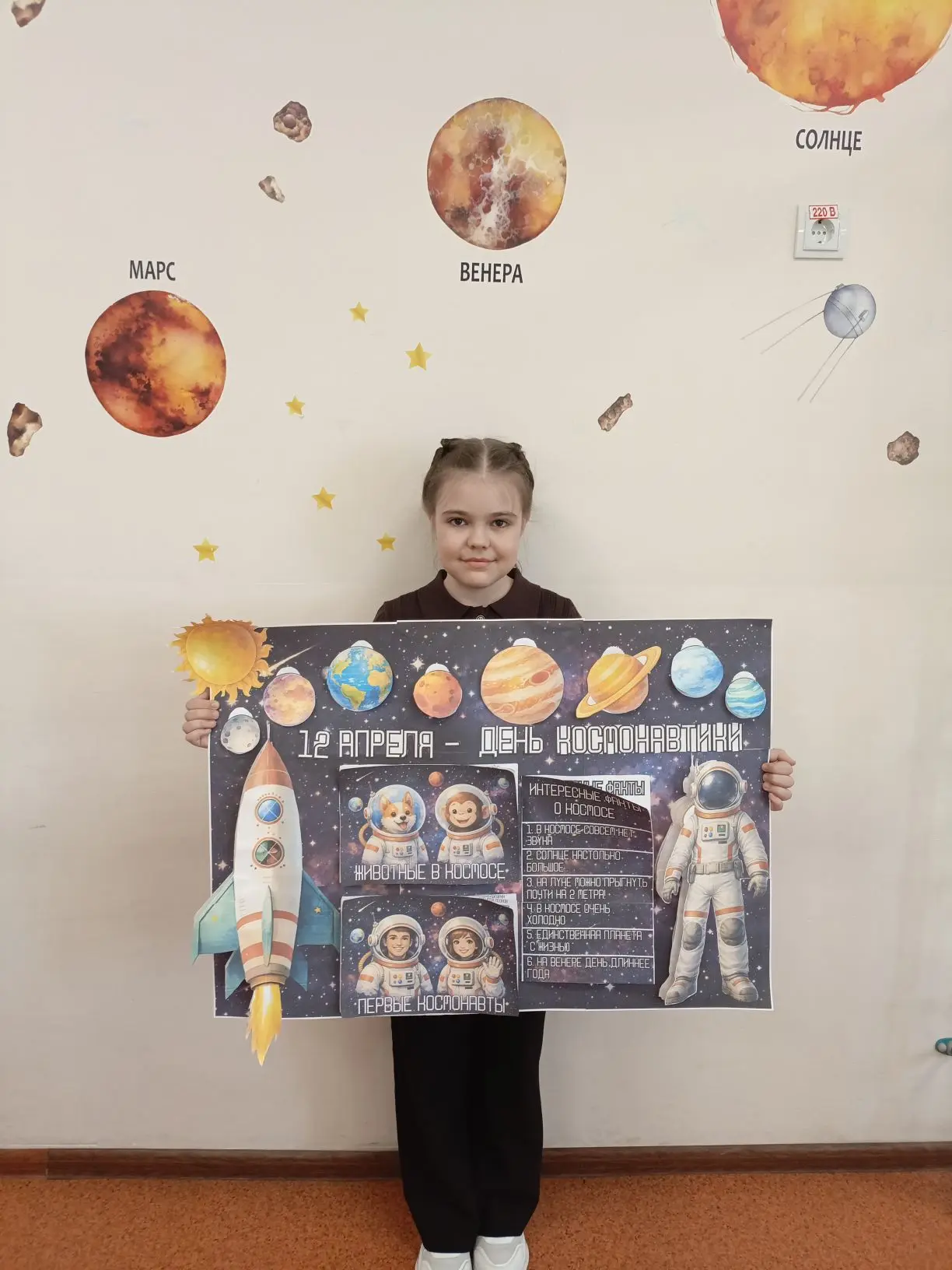 Учащаяся 4 А класса Казанцева Арина выпустила интерактивную газету, посвящённую 65 летию первого полёта в космос. Из нее можно узнать о первых космонавтах, животных в космосе, что такое ракета и как она взлетает, что такое скафандр, и для чего он необходим, а также интересные факты о космосе.