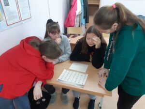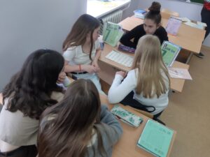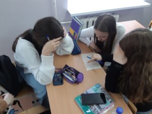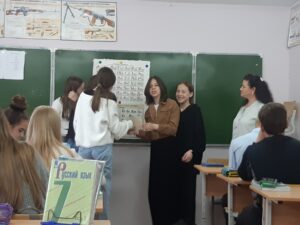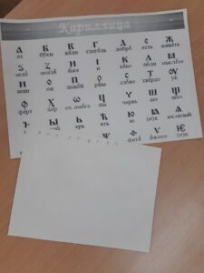 Девчонки и мальчишки смотрели фильм о создателях старославянской азбуки , изучали алфавит и составляли предложения на кириллице.