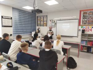 В этом учебном году в старших классах школы реализуется программа внеурочной деятельности «Киноуроки», которую проводят директор школы Казаринова Е.В и учитель изо и технологии Робканов А.П. Это курс занятий, который воспитает поколение выпускников с этическими качествами через искусство, кино и добрые дела на примере героев фильмов. Сегодня учащиеся педагогического класса посмотрели и обсудили фильм » Педагогическая поэма «. Занятие носило и профориентационный характер. В обсуждении затронули важный вопрос: роль профессии учителя в современном обществе.