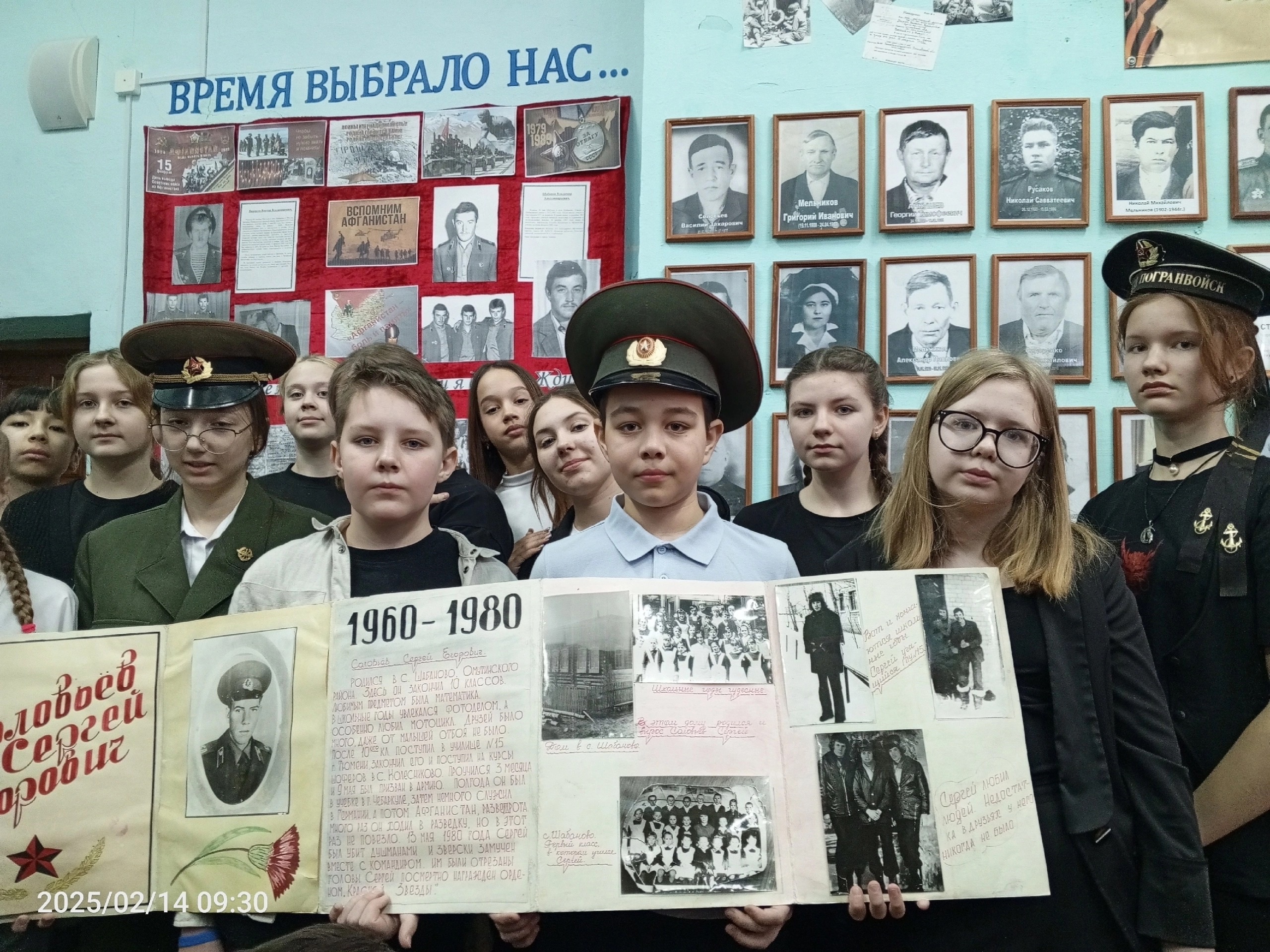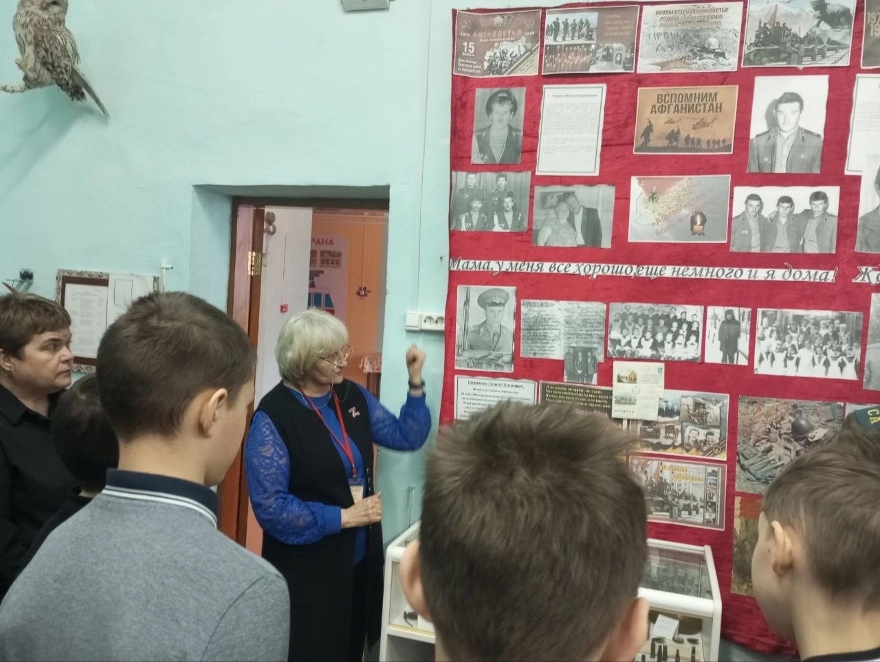 В преддверии памятной даты- Дня вывода советских войск из Афганистана- 6 «а» класс посетил краеведческий музей Шабановской школы. Хранитель музея Шабанова Ирина Дмитриевна рассказала о героях- земляках той войны. Ребята внимательно слушали истории мужественных смелых людей, достойно выполнивших свой долг. Спасибо за ПАМЯТЬ!