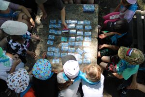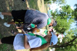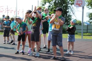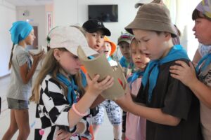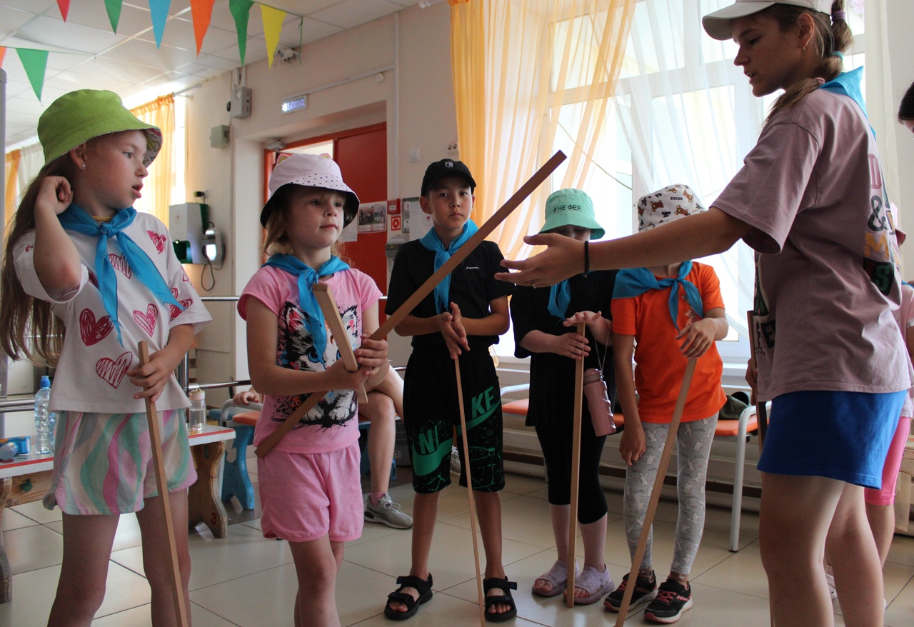 Сегодня день начался с линейки, которая называлась «Визитная карточка»: мы услышали название отрядов и девиз. Основным же событием стал игровой квест «Поколение победителей», каждое задание которого было направлено на объединение ребят. Выполняя задания, они учились договариваться, уступать и сотрудничать.