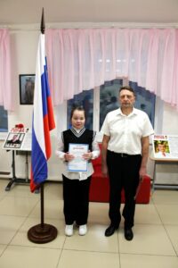 Она стала победителем муниципального этапа олимпиады младших школьников и успешно выступила на школьном и муниципальном этапах научно-практической конференции «Первые шаги в науке». За свои достижения Катя была награждена грамотой.