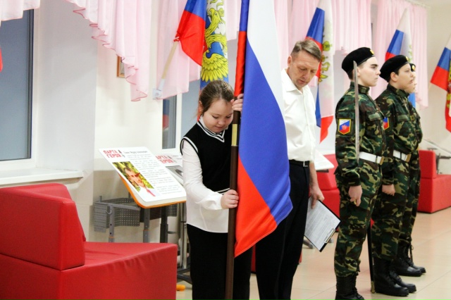 Почетное право установить флаг было предоставлено Риффель Екатерине, ученице 4 «А» класса.