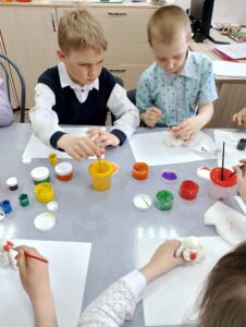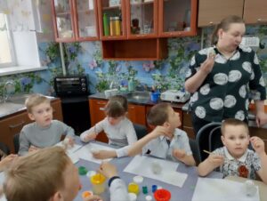 В канун праздника православных христиан — Пасхи, 17 апреля АУ СОН ТО «СРЦН с.Омутинское» пригласил ребят 1 «А» класса МАОУ ОСОШ №1 на кулинарный мастер — класс «Пасхальный кулич», где ребята потрудились над украшением своего куличика и раскрашивали сувенирчики под названием «Пасхальный кролик». Конечно, работа была не простая. Дети внимательно слушали и шаг за шагом выполняли работу, проявив свои творческие способности, знания, умения, аккуратность. В итоге куличики получились замечательные.