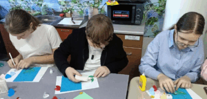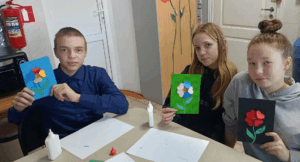 Затем специалисты учреждения предложили детям изготовить уникальные открытки своими руками. Каждый старался вложить частичку своей души в подарок, чтобы порадовать своих мам и бабушек.