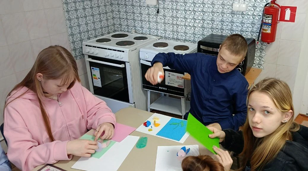 Затем специалисты учреждения предложили детям изготовить уникальные открытки своими руками. Каждый старался вложить частичку своей души в подарок, чтобы порадовать своих мам и бабушек.