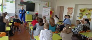 18 сентября сотрудником больницы был проведен мастер-класс по оказанию первой медицинской помощи при кровотечениях, ожогах, остановке дыхания. Присутствующими были педагоги школы и учащиеся.