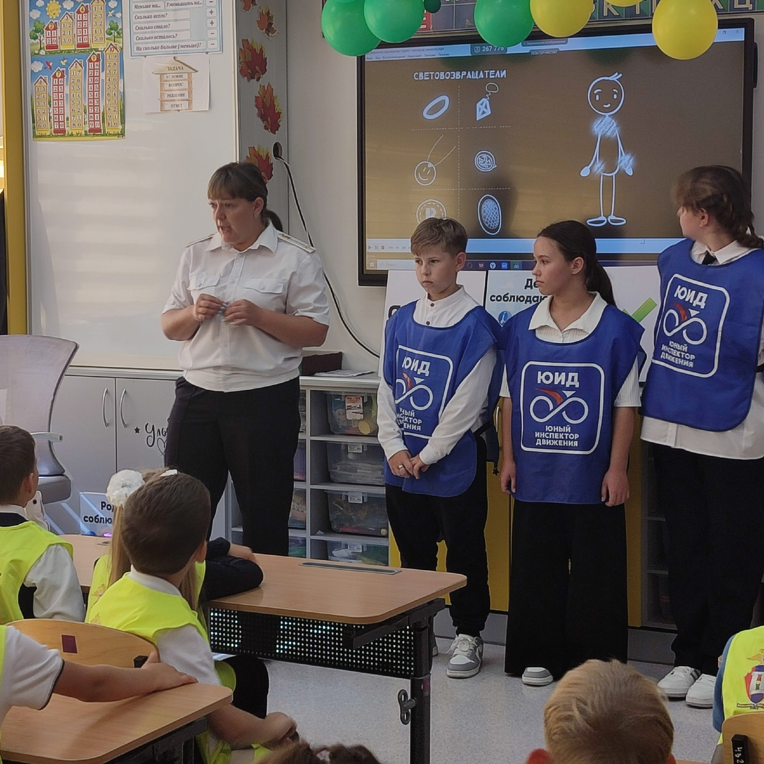 В рамках месячника «Безопасности дорожного движения», отрядом ЮИД была организована встреча с инспектором по пропаганде безопасности дорожного движения отделение госавтоинспекции Тимофеевой Т.Н. В ходе беседы ребятам второго класса напомнили о правилах перехода дороги по пути в школу и обратно, а так же, как важно иметь светоотражатель на одежде, рюкзаке и т.д.