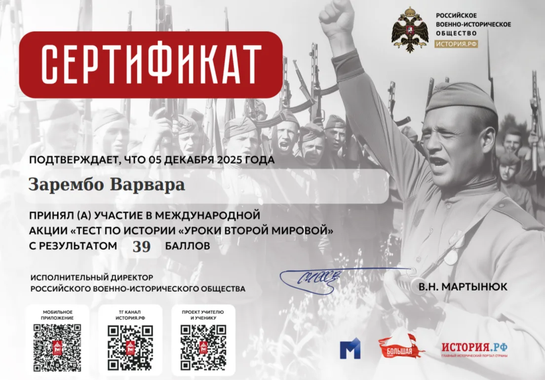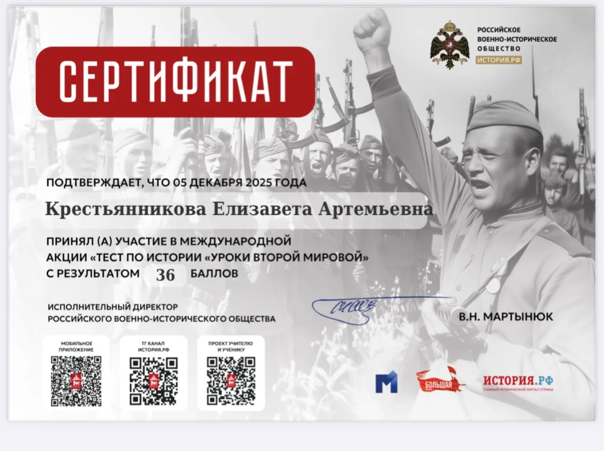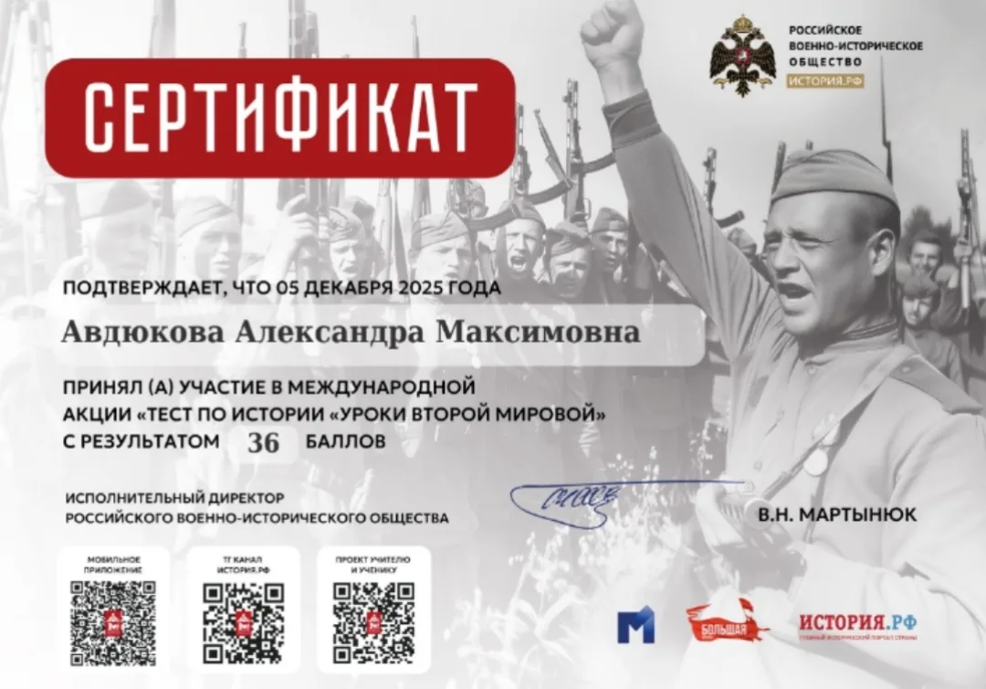5 декабря учащиеся 10 классов Омутинской первой школы проверили свои знания и приняли участие в самой масштабной акции с миллионными охватами по истории Великой Отечественной войны!