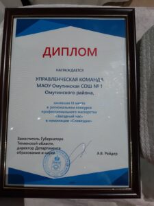 Команда нашей школы в составе Е.В. Казариновой, С.В. Андреевой, М.И. Монахова, Ю.В. Чемакиной, М.А. Зюзиковой участвовали в номинации «Созвездие», где определяются лучшие управленческие команды образовательных организаций юга Тюменской области. По итогам конкурсного испытания пять команд вышли в финальный тур, в том числе и команда нашей школы. 15 октября состоялось награждение победителей. Наша управленческая команда заняла почетное 3 место из 26 команд! Поздравляем!