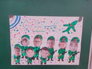 Накануне 23 февраля девочки 5 «а» поздравили мальчиков класса с Днём защитника Отечества. Стенгазета, нарисованная своими руками, украсила доску. Выполняя задания квеста, мальчики пели караоке, чистили картошку, отгадывали ребусы, играли в игры. В конце мероприятия ребят ждал сюрприз, приготовленный родителями — горячая пицца и сок.