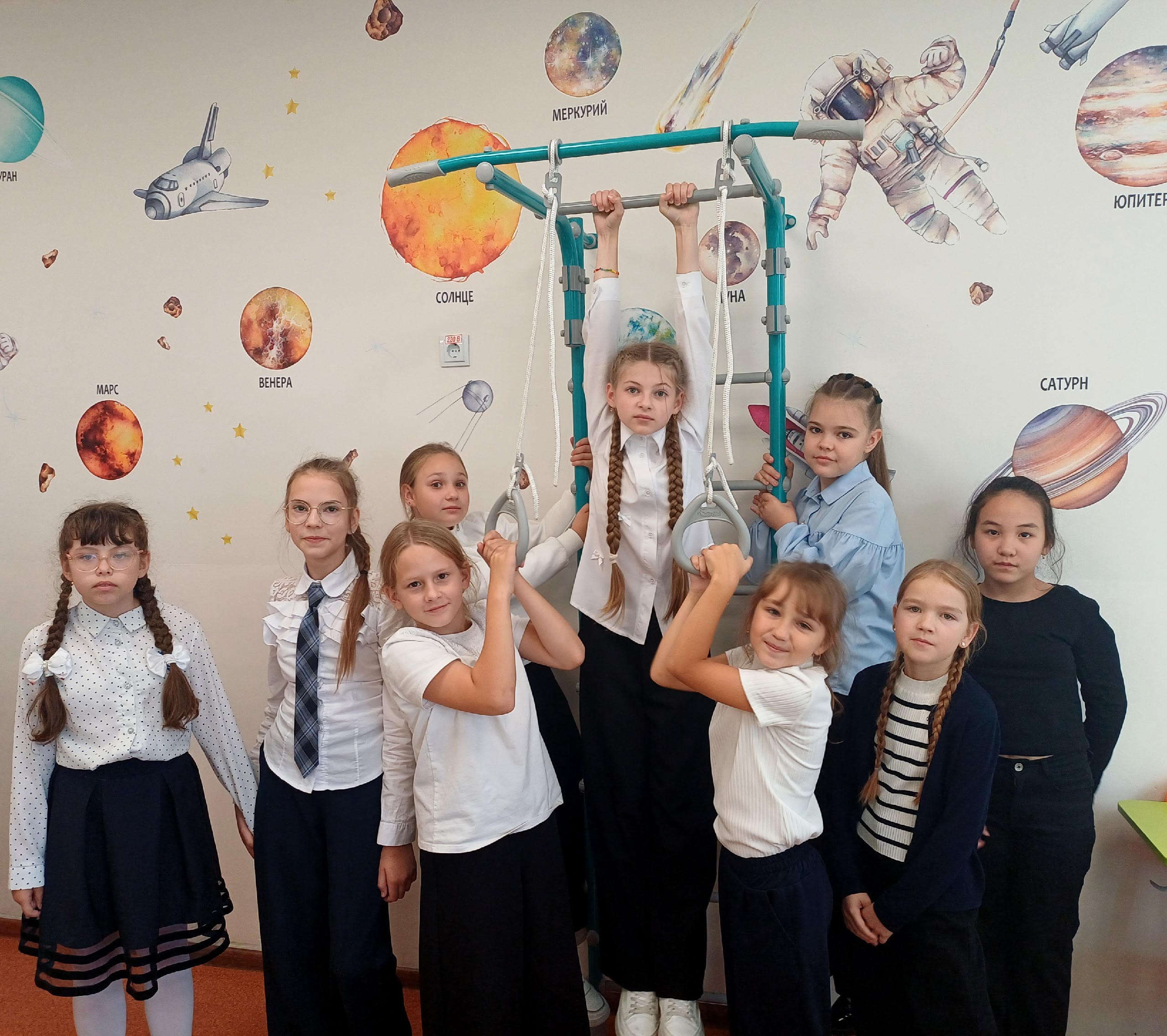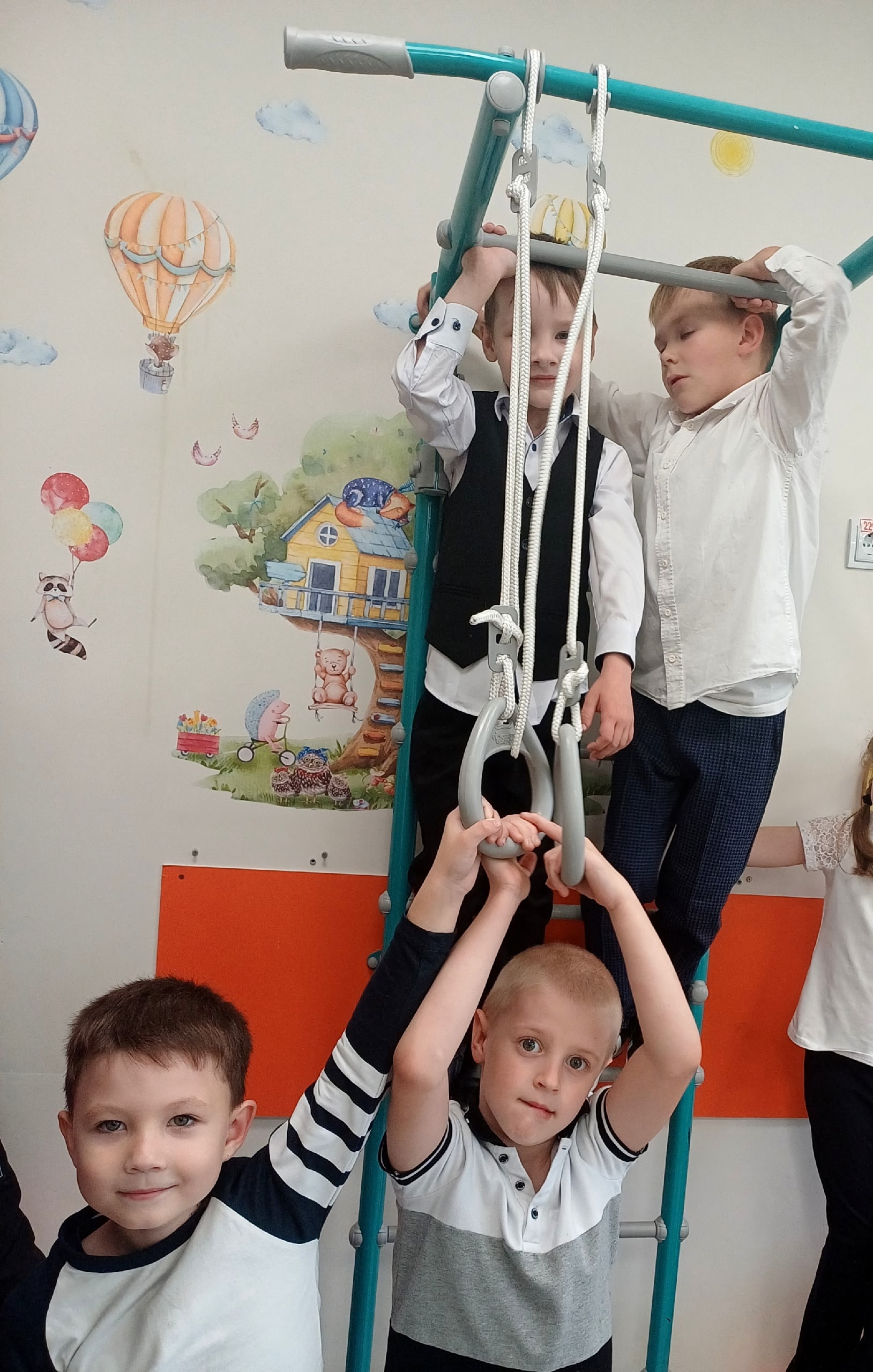 🤸♂️Теперь у детей есть возможность не только учиться, но и активно заниматься физической культурой прямо в классе. Эти стенки оборудованы различными элементами для тренировок: лестницами и гимнастическими кольцами.