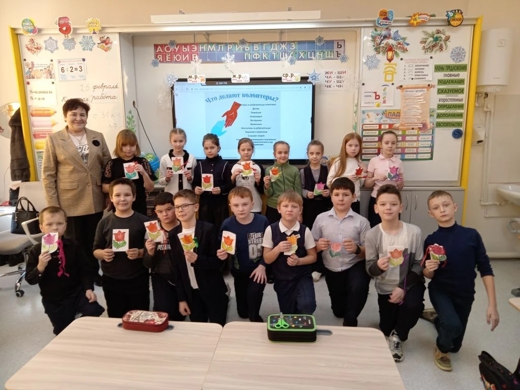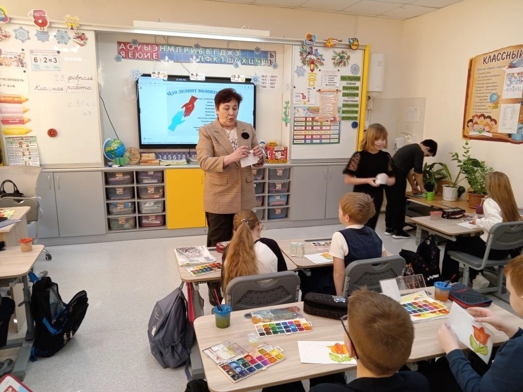 В 3 А классе занятие «Бабушкиной школы» провела Людмила Михайловна Наводчикова. Людмила Михайловна побеседовала с детьми на тему: «Доброволец» — это человек, который по доброй воле, безвозмездно оказывает помощь нуждающимся. А ещё провела мастер-класс по изготовлению поздравительной открытки к 8 Марта, готовим сюрпризы для мам и бабушек.