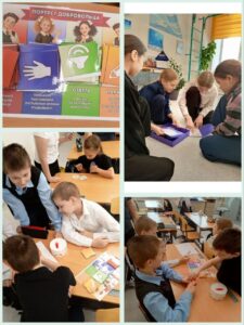 Ребята активно играют в настольную игру «Портрет добровольца».