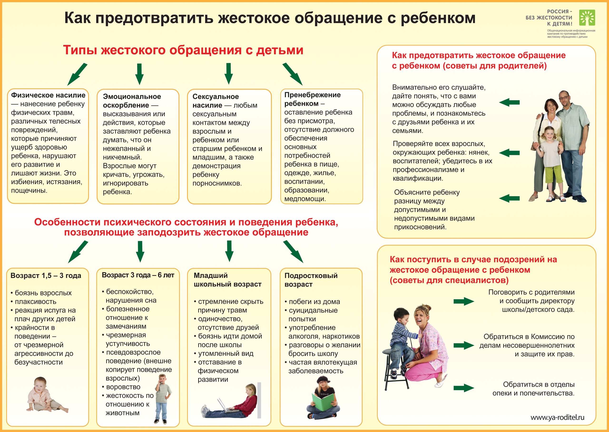 Жестокое обращение с детьми — действия (или бездействие) родителей, воспитателей и других лиц, наносящее ущерб физическому или психическому здоровью ребенка.