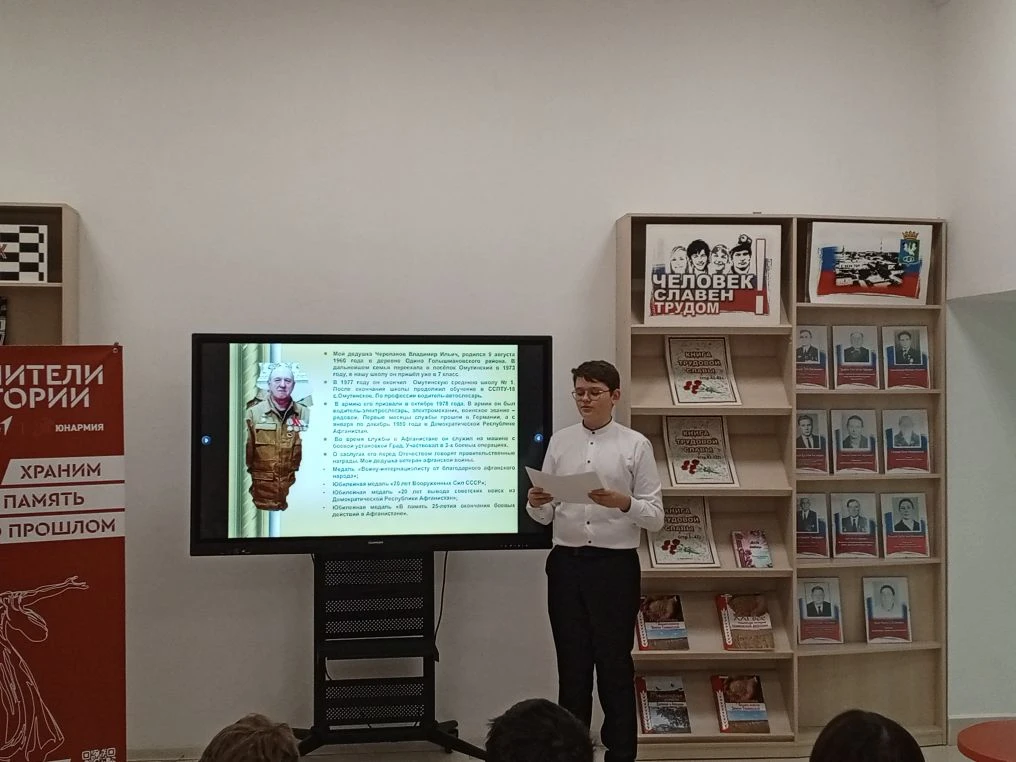 17 декабря участники проекта «Хранители истории» собрались в библиотеке на районный патриотический форум «Во славу героев Отечества». Ребята представили на форуме боевые листки, презентации, посвященные их прадедушкам, прабабушкам, дедушкам, сражавшимся в годы Великой Отечественной войны, Афганской войны. С теплотой в голосе, проникновенно звучали рассказы ребят.