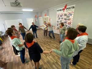 Так как сбор состоялся сразу после дня детских организаций, родителям было предложено в духе пионерии+РДШ пройти испытания: игрой, творчеством и активностью.