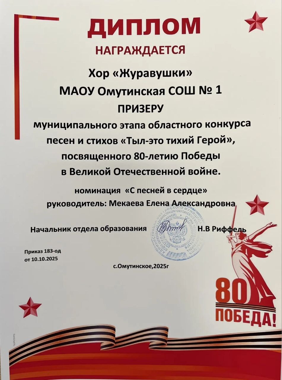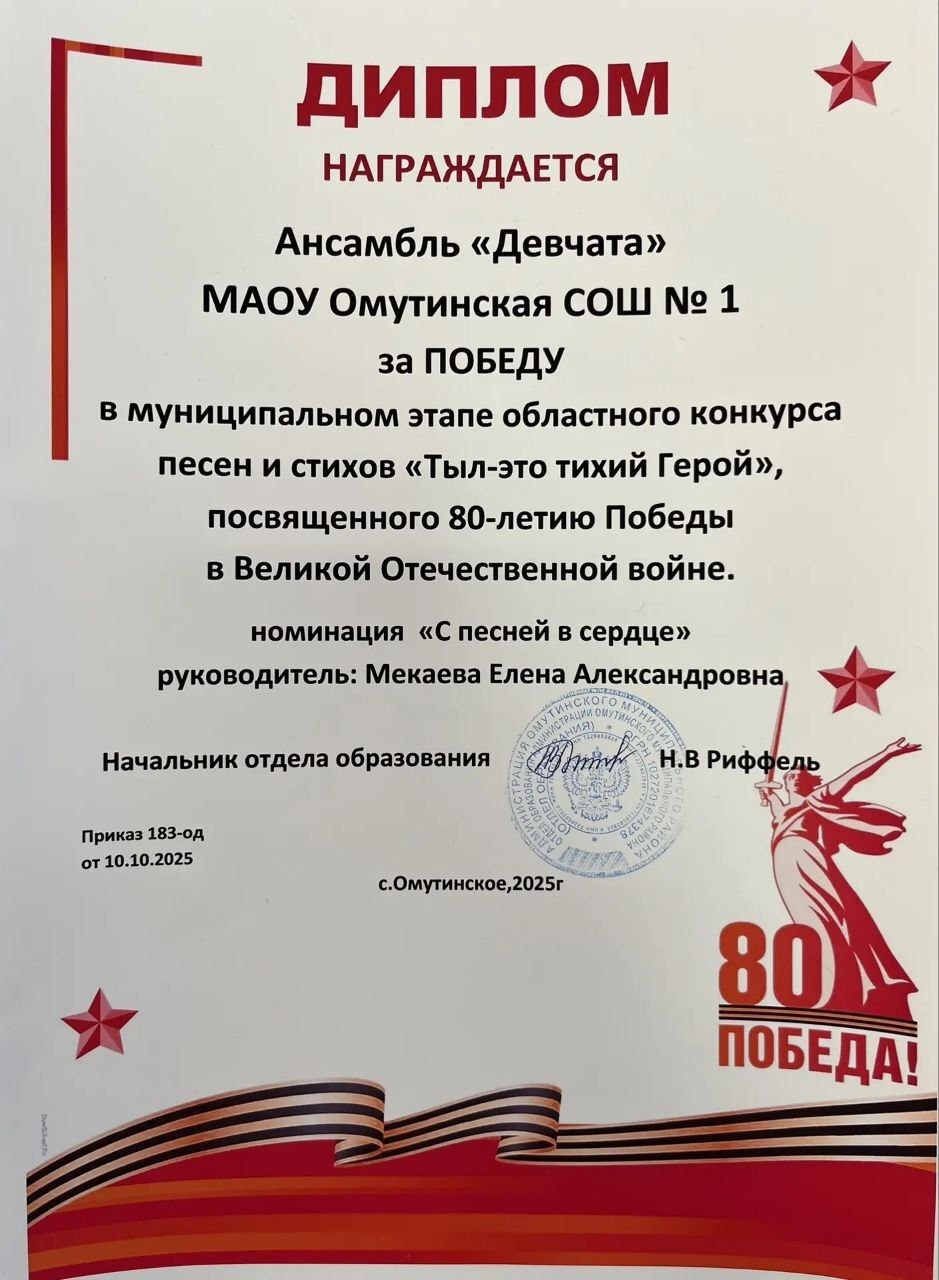 ✅ Учащиеся МАОУ ОСОШ № 1 приняли участие в областном конкурсе песен и стихов «Тыл – это тихий Герой», посвященном 80- летию Победы в Великой Отечественной войне.