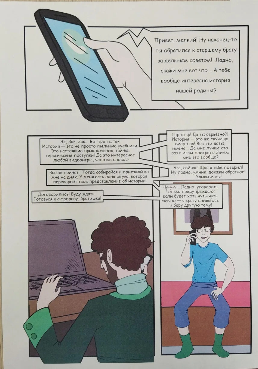 2026 год для нашей малой Родины является знаменательным —любимому Омутинскому району исполняется 95 лет с момента его основания! В школе реализуется цикл мероприятий, посвященных этому важному событию. В марте в рамках научно-практической конференции «Шаг в будущее» прошли защиты работ учащихся 11 классов. Манкиев Сайфулла, ученик 11б класса, защитил исследовательскую работу «История Омутинского района в комиксах» (рук. Кучумова Н.А.). Молодой человек не только изучил историю нашего района, но и с помощью своего интереса к информатике и программы создания комиксов, создал книгу комиксов. Главный герой , Зак, попадает в 18-й век, когда только появилась крепость Омутная и постепенно, путешествуя по времени, узнает историю края с момента основания до наших дней. «Я выбрал именно эту тему своей работы, потому что считаю, каждый человек должен знать о том месте, где он живёт. Село появилось давно, и мне хотелось узнать, когда именно оно появилось, почему его так назвали. Для этого я провел своё маленькое исследование, которое поможет ребятам младшего возраста изучить историю своего края»- так говорит Сайфулла о своем проекте.