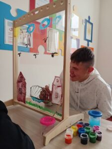 На фото представлен фрагмент занятия «Город счастья». Подростки рисуют дома, в которых живет добро, тепло, уют и взаимопонимание.