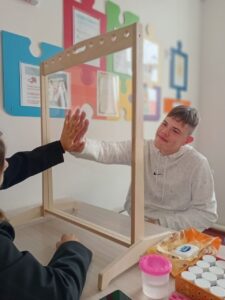 В процессе совместной работы учащегося с психологом, учителем или родителем прозрачный экран выполняет и условную защитную функцию, когда легче установить контакт, вызвать общение. Он может применяться как в индивидуальной, так и в групповой работе с детьми разного возраста и не имеет интеллектуальных ограничений для использования.