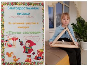 Ребята вместе с родителями изготовили своими руками прекрасные кормушки для птиц и были поощрены грамотами.