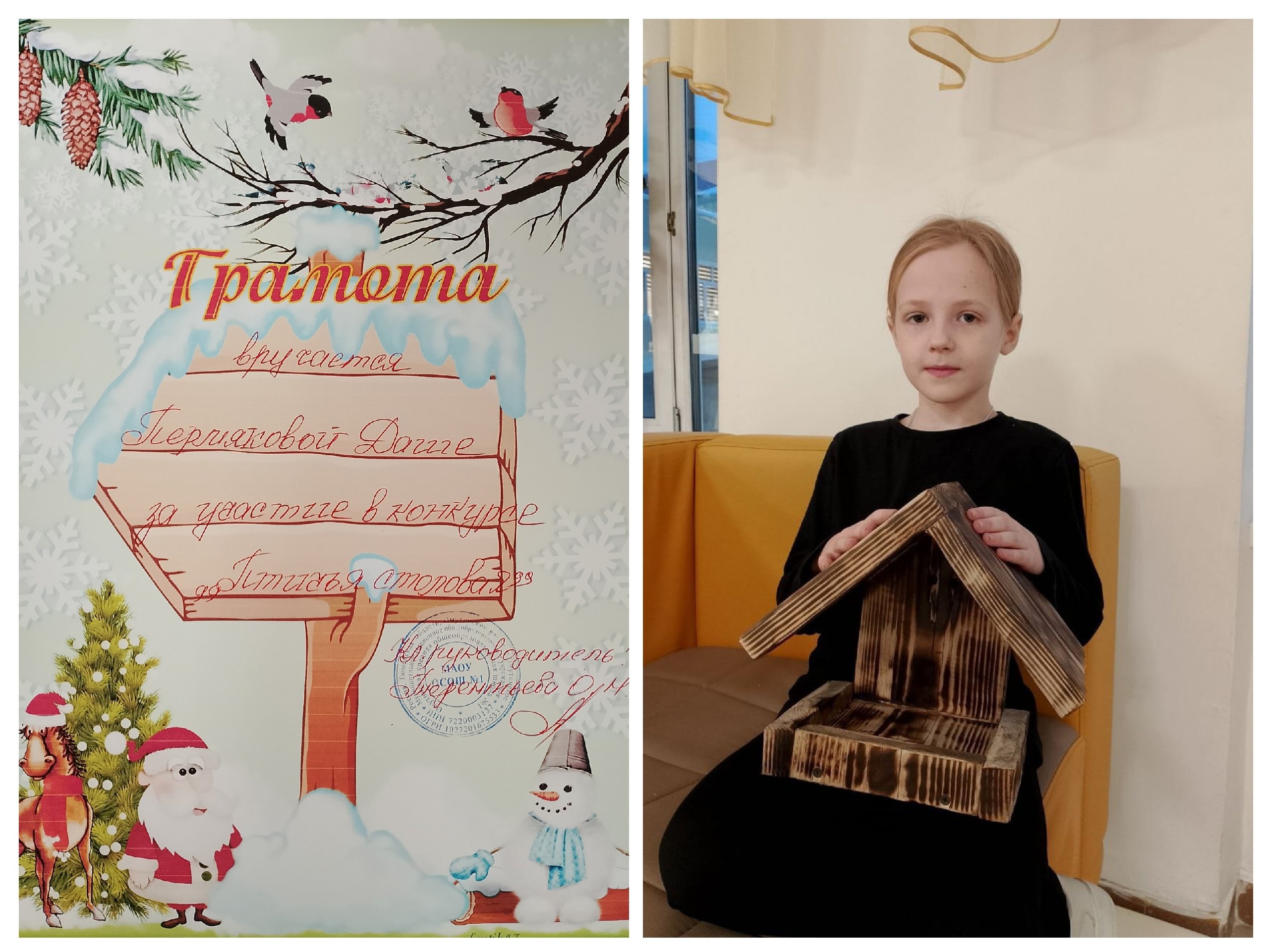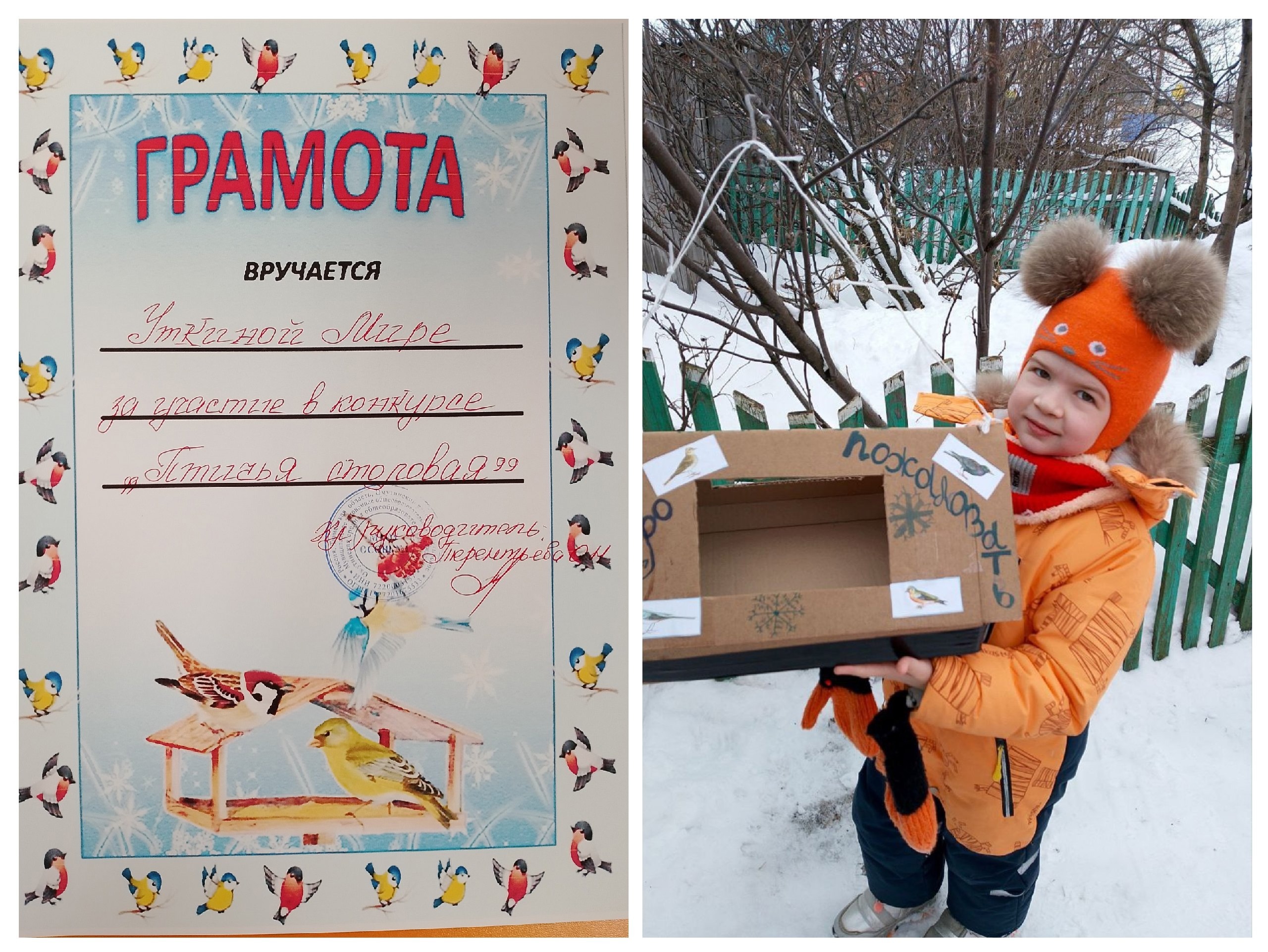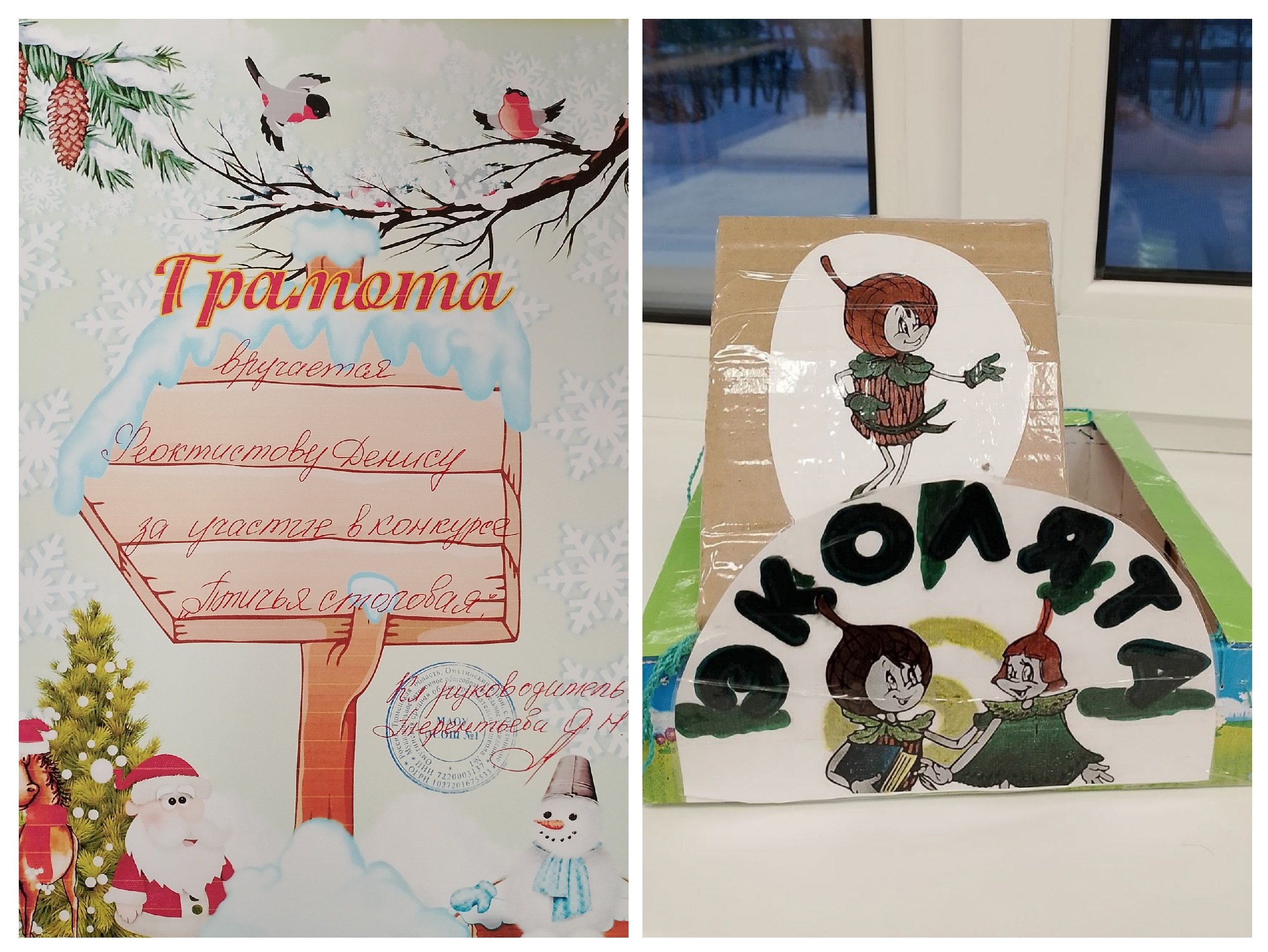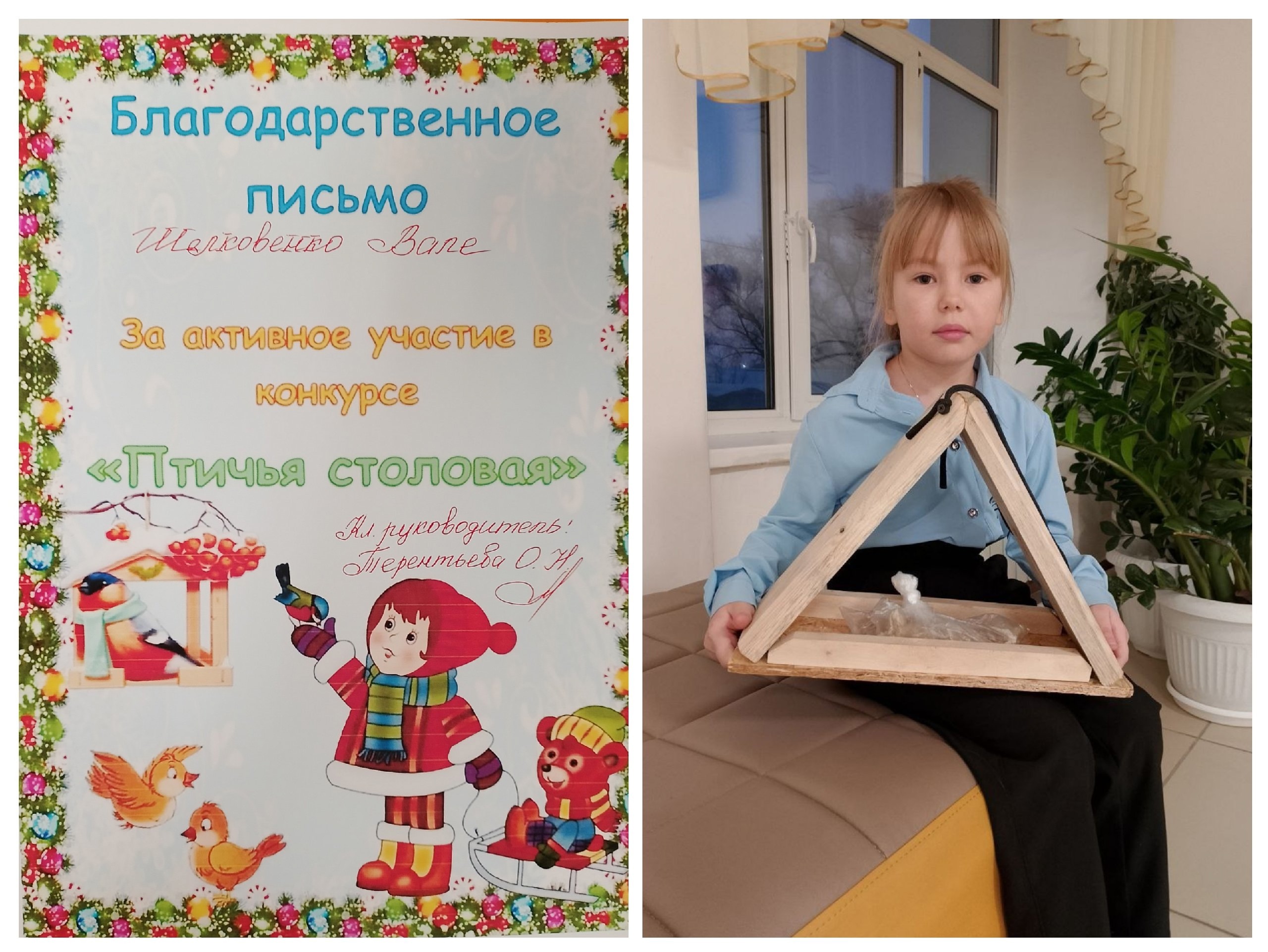Ребята вместе с родителями изготовили своими руками прекрасные кормушки для птиц и были поощрены грамотами.