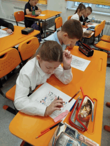 Ребята 2Б класса продолжают реализацию трека «Орлёнок-эрудит». На очередном занятии данного трека были интересные задания, направленные на поиск определённых предметов на картинке, а также решение увлекательных ребусов