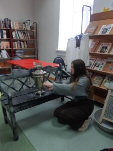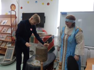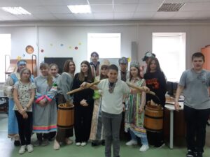 Ребята 7 «а» класса приняли участие в «Библионочи», где познакомились с особенностями русского народного костюма, с русскими традициями и бытом.