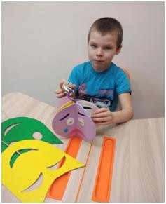 Обезьянка Анфиса пригласила детей в сказочный мир, где живут положительные эмоции – радость, счастье, удивление, удовольствие и неприятные события, неисполнение отрицательные эмоции – грусть, обиду, страх, злость. Во время игры малыши угадывали, какое настроение у друзей Анфисы с помощью масок, эмо-книжки, смайликов. В конце занятия дети наполняли корзинку разноцветными клубочками, таким образом выражали свое настроение. Если занятие понравилось и они получили положительные эмоции –красный клубок, что-то не понравилось- зеленый, если совсем не понравилось, то черный клубок. Корзинка наполнилась красными клубочками.
