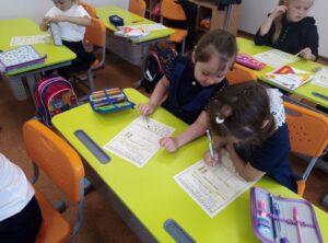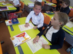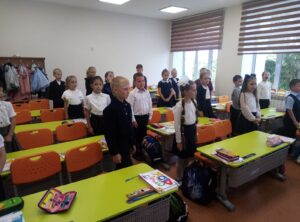 Начался с исполнения гимна нашей страны, очень приятно, что уже в 1 классе дети знают, что такое гимн, как его нужно слушать и частично знают слова. Узнали о трагедиях в результате террористических актов, о мерах безопасности. После этого продолжили путешествие в мир знаний. В конце дня начали работу в своих «Первоклассных тетрадках», которые позволяют лучше адаптироваться к новым условиям школьной жизни. Сегодня мы, выполняя задания, знакомились друг с другом. Нужно было не только узнать имя соседа по парте, но и выяснить чем он любит заниматься. Результаты общения отражали в своей тетрадке. В завершении дня поздравили нашу именинницу: Сулейменову Амину с днем рождения и получили от нее сладкое угощение. День удался! Завтра мы обязательно продолжим наше путешествие.